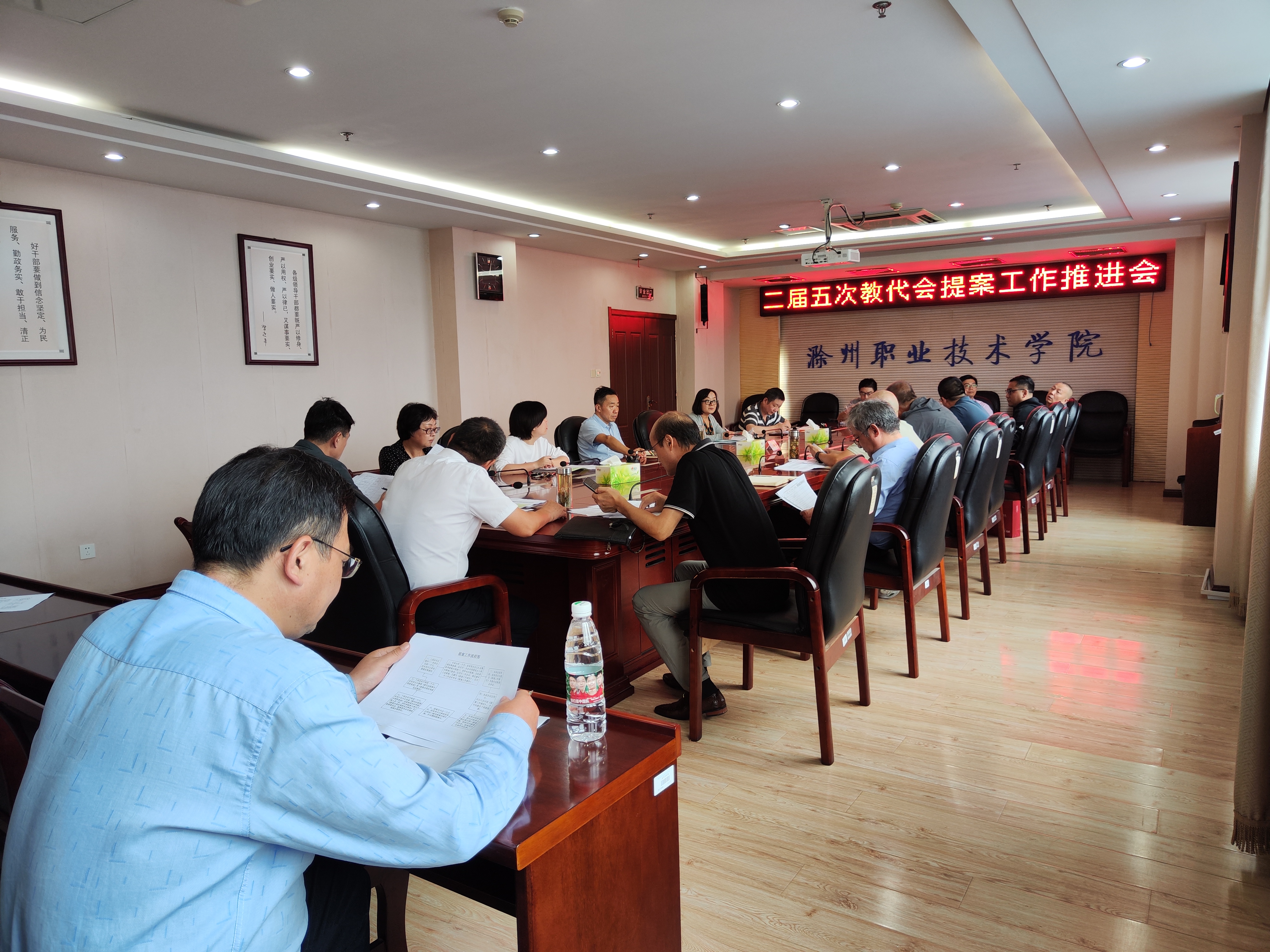 9月15日下午,学校在综合楼904会议室召开二届五次教代会提案工作推进会。会议由提案委员会主任李爱红主持。校党委副书记、教代会执委会主任杨家庆,提案承办单位主要负责人,教代会秘书处以及提案委员会成员参加了会议。