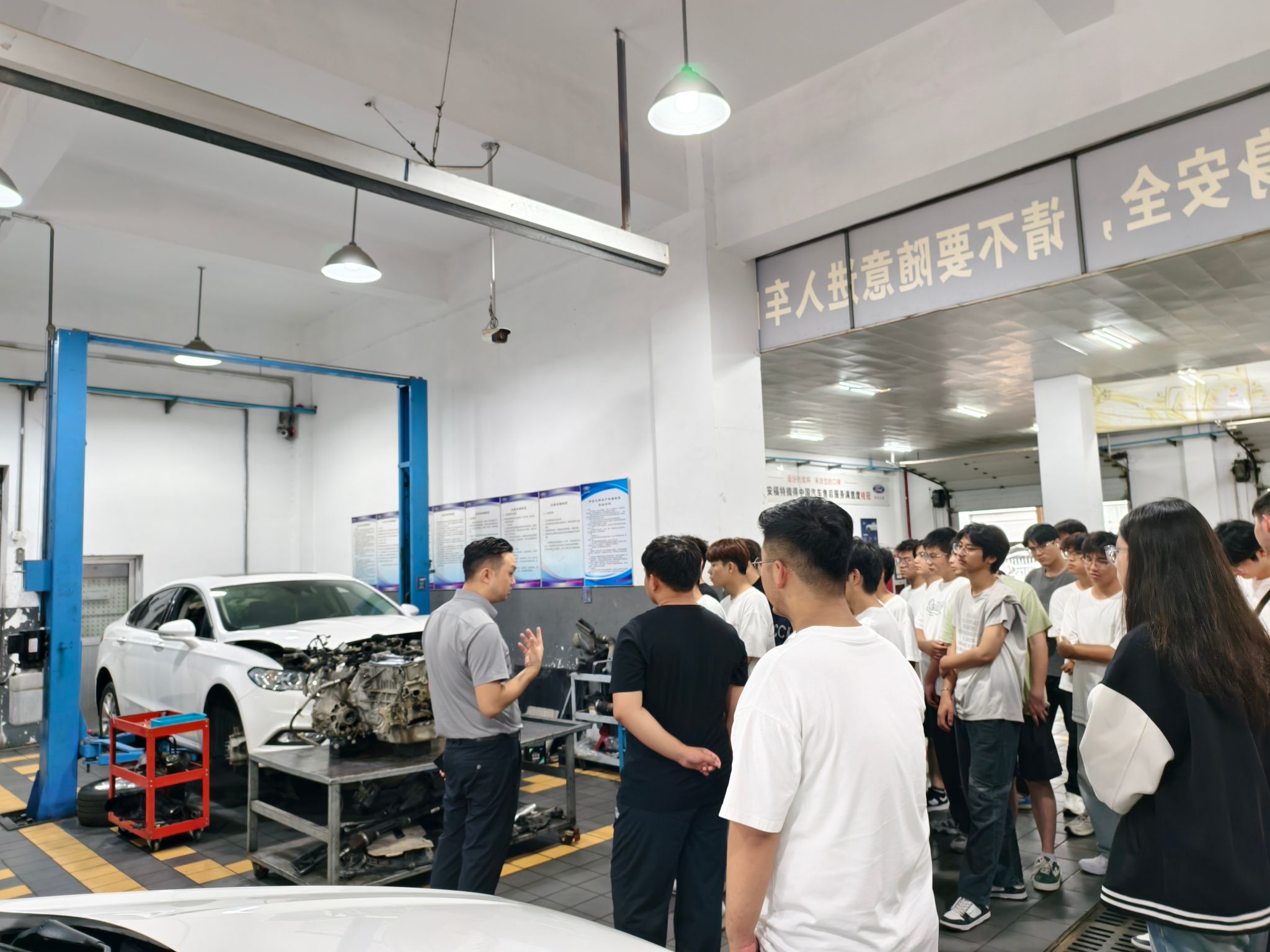 在4S店工作人员的引导下,新生们先后参观了整车展示区、售后维修车间、客户服务中心等区域。在展示区,销售经理详细讲解了不同车型的性能参数、市场定位及销售技巧,结合实车演示让新生们对汽车构造与营销逻辑有了直观认知。维修车间内,技术人员操作专业设备进行车辆检测与保养,激发了学生们对汽车机械原理、维修技术等专业知识的浓厚兴趣。