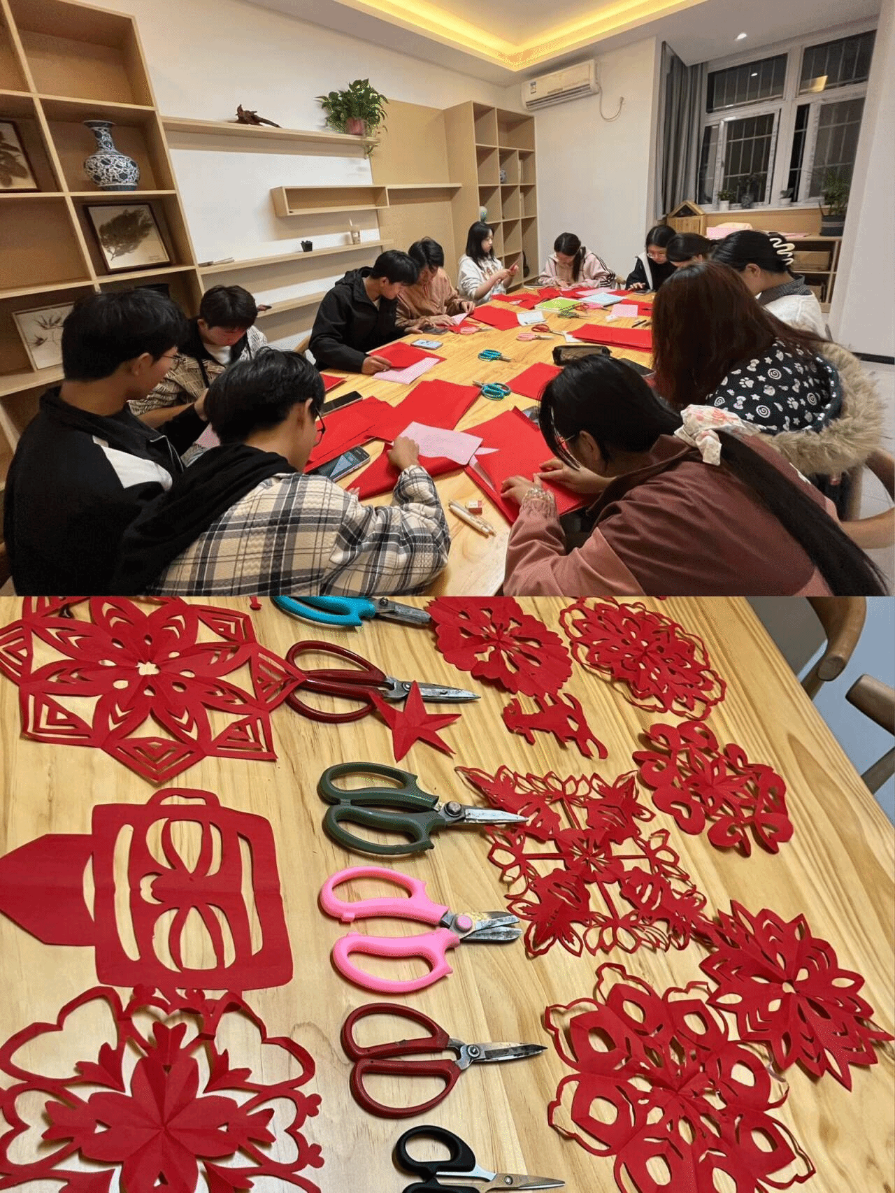 为弘扬中华优秀传统文化,丰富校园美育实践。食环学院学生会于11月2日晚7点在7号楼一站式服务中心101园艺工坊举办“非遗剪纸进校园,指尖传承中华魂”主题活动。25级同学们积极报名体验剪纸技艺,共同感受中国传统民俗艺术的独特魅力,并用双手去感受中华剪纸艺术的匠心与魅力。