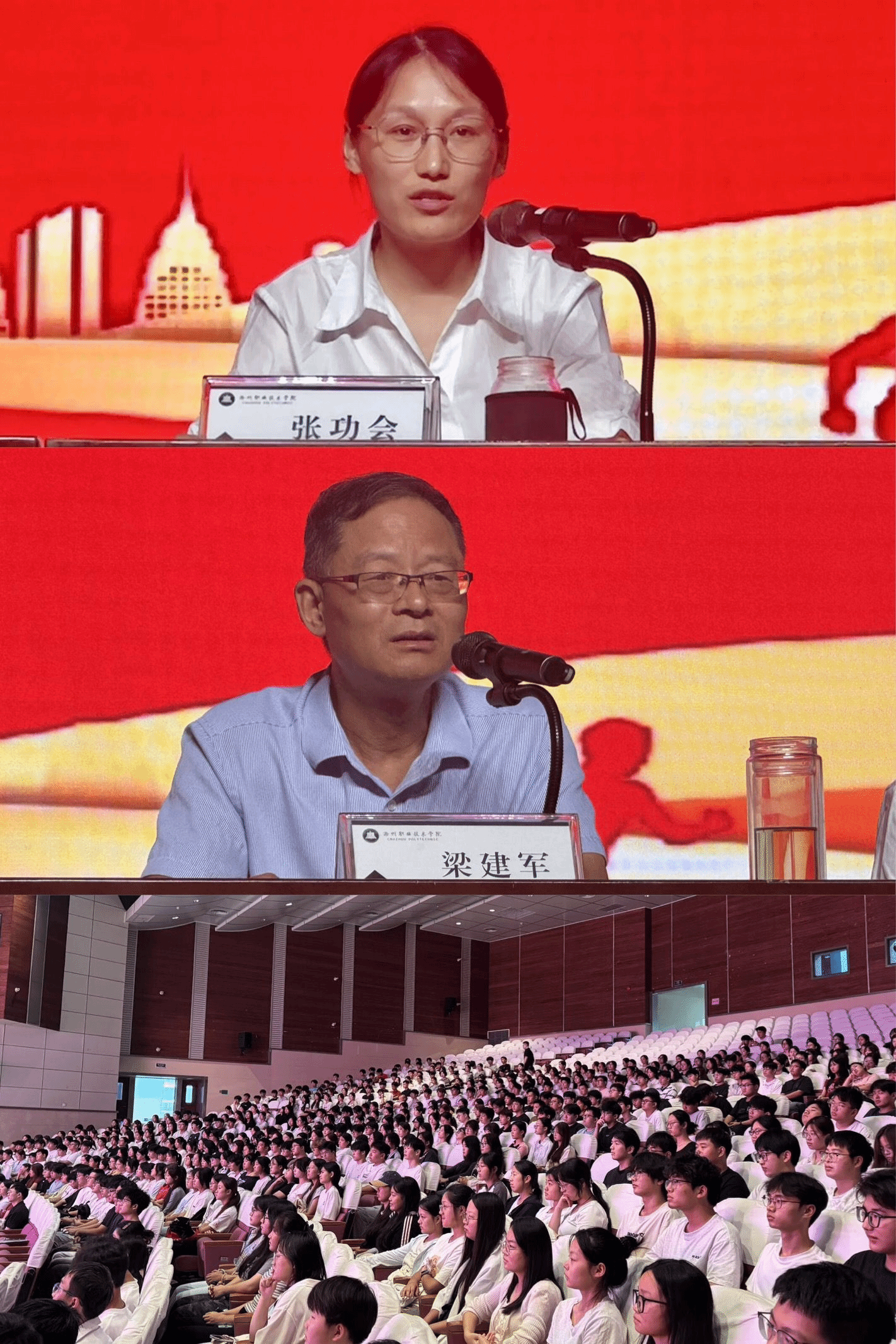 院长梁建军教授发表了热情洋溢的讲话。从市情、校情、院情及专业情况等层面进行详细阐述,重点向新生们介绍了教师团队的教学实力与校企合作共建的实践平台,并展示了近年来学生在技能大赛、科研创新中的亮眼成果。强调食品与环境工程学院各专业关乎民生福祉与生态未来,学院始终以“培养行业有用之才”为使命,鼓励新生既要扎实掌握专业理论,更要在实践中锤炼解决实际问题的能力,将个人成长与行业发展、社会需求紧密结合。