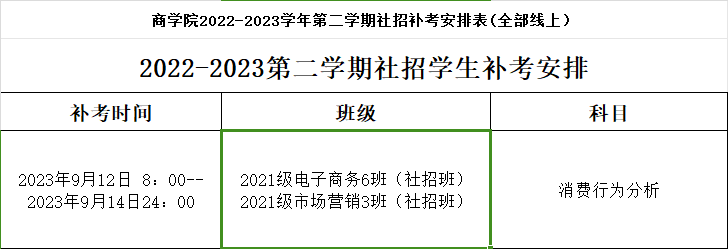 商学院2022-2023学年第二学期社招补考安排表(全部线上)