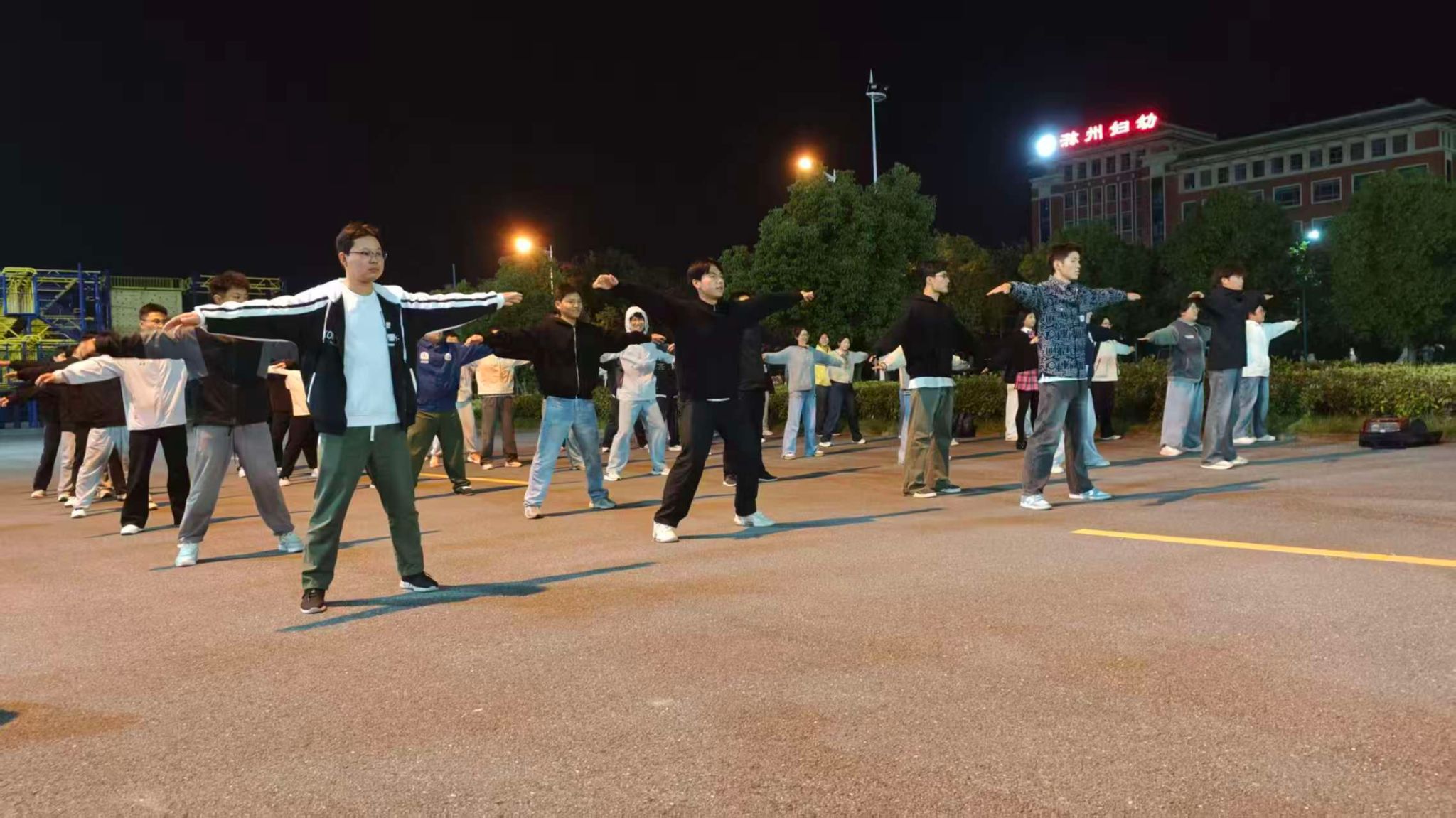 排练现场,负责人率先示范,带领同学们从动作规范度、节奏统一性到队形变换流畅度逐一打磨。无论是手臂伸展的角度,还是步伐移动的间距,大家都反复练习、相互纠错;即便汗水浸透训练服,同学们依旧保持高昂热情,用专注与坚持诠释着建工学子的拼搏精神。