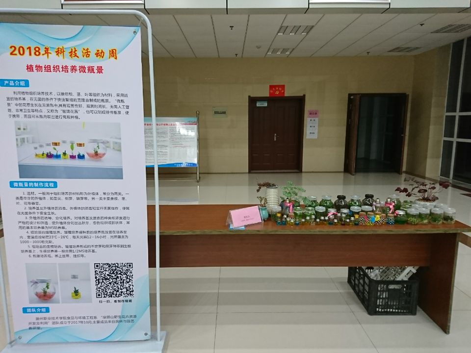 2018年全国科技活动周的主题是“科技创新、强国富民”。我院食环系“琅琊山野生花卉资源开发及利用”科教创新团队成员承办了本年度科技活动周的科普活动,团队经过研究,决定将植物组培微瓶景作为科普作品,向社会普及植物组织培养的基础知识。